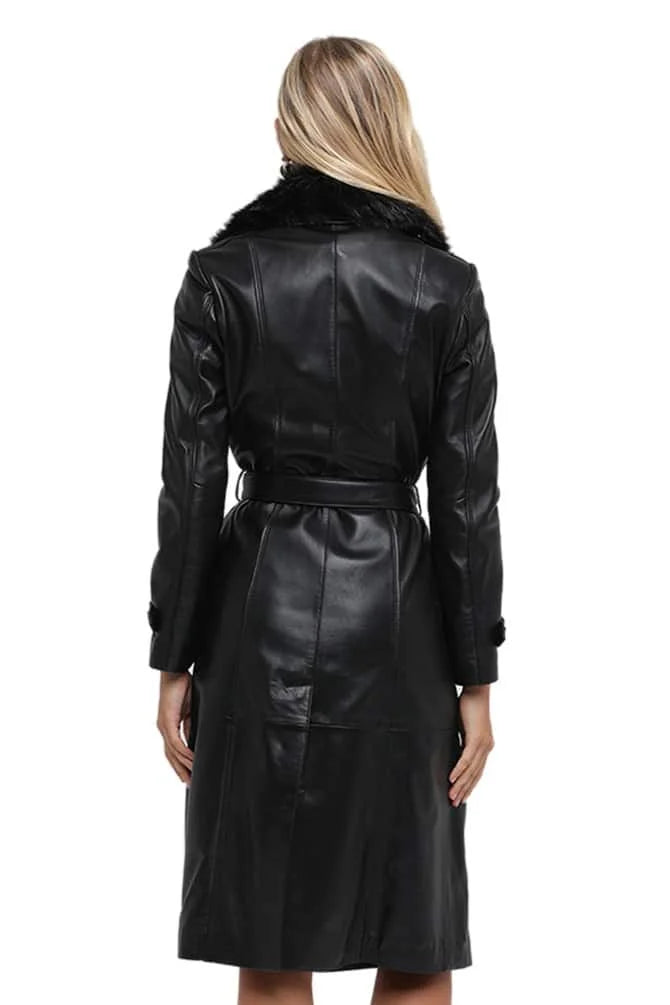 Step into sophistication with the Women’s Black Leather Coat, with a original fur collar and a masterpiece of both style and function. Crafted from distressed leather sheepskin, this coat exudes a timeless elegance with a contemporary twist. Its long, slim silhouette is complemented by a center belt, accentuating your figure while providing a tailored look. The front button closure adds a classic touch and ensures a snug fit, ideal for braving winter's chill. Designed with the traveler in mind, this coat offers both practicality and luxury, making it a perfect companion for your journeys. The distressed leather not only enhances its rugged charm but also ensures durability, withstanding the rigors of travel and daily wear. Two lower hand pockets provide convenient storage for essentials, while the long length keeps you warm and protected against the elements. Whether you’re exploring new destinations or navigating city streets, this black leather coat combines elegance with functionality, ensuring you stay stylish and comfortable throughout your adventures.
