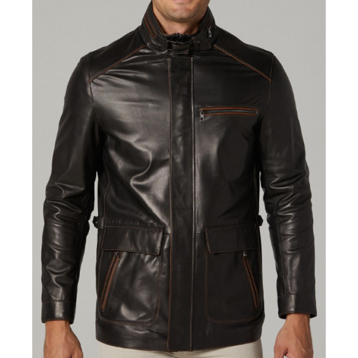 Three strategically placed pockets, two lower on both sides and one upper side pocket, add both functionality and flair to the design. The YKK zips guarantee smooth closures, emphasizing the jacket's superior craftsmanship. Ideal for the modern traveler, this slim-fit jacket promises a contemporary silhouette without compromising comfort.