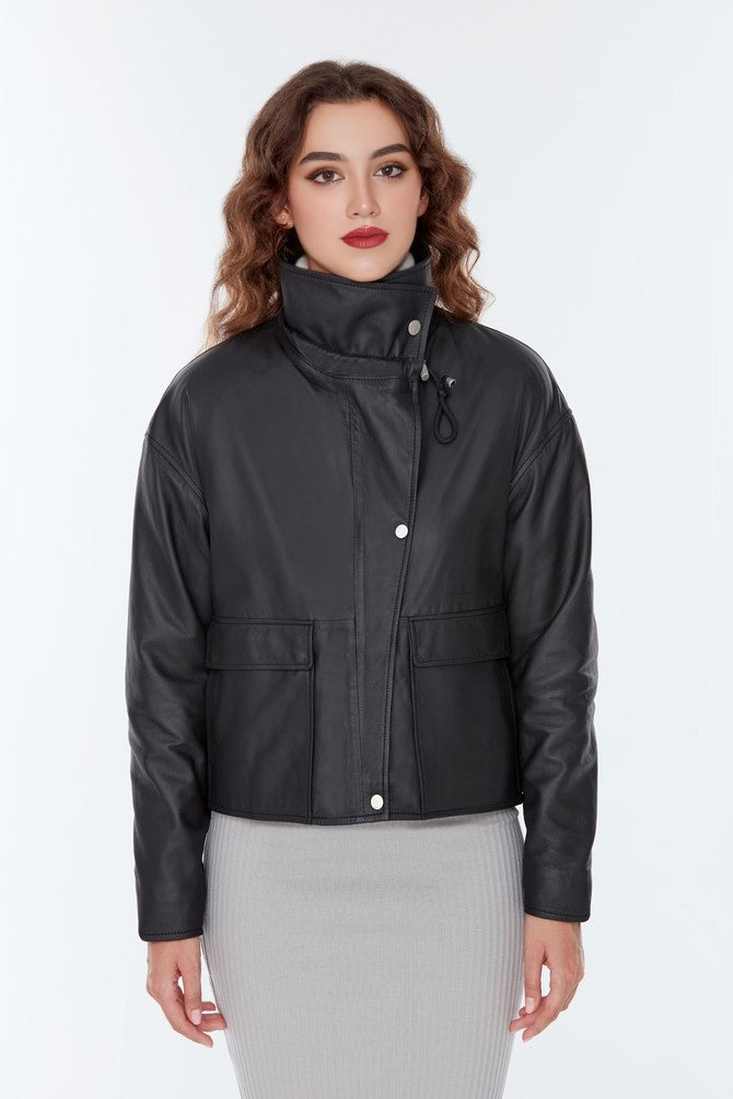 The Black Nova Leather Jacket for Women seamlessly blends timeless style with contemporary functionality. Crafted from high-quality sheepskin leather, this distressed jacket exudes sophistication and edginess. Its button and zip closure ensures a secure fit, while also adding a touch of versatility to your look. The jacket features two side pockets that offer both convenience and a chic aesthetic. The combination of the classic black color and the sleek design makes it a versatile piece that can effortlessly elevate any outfit, whether it's for a casual day out or a night on the town. With its durability, style, and practicality, this jacket is a must-have addition to any fashion-forward wardrobe.