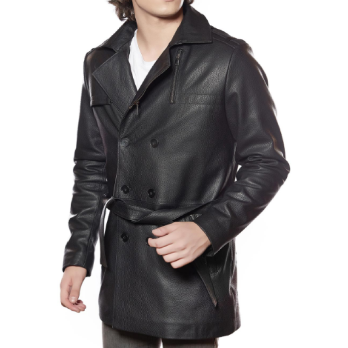 Introducing our Black Leather Coat for men, a pinnacle of refined style and functionality. The lapel collar and stylish front button closure add an elegant touch to this pure sheepskin coat. Crafted from distressed leather, it offers durability with a rugged charm, perfect for riders. The center belt for closure and double-breasted style enhance the coat's sophistication, while the two lower side pockets and two inside pockets provide practicality and flair.