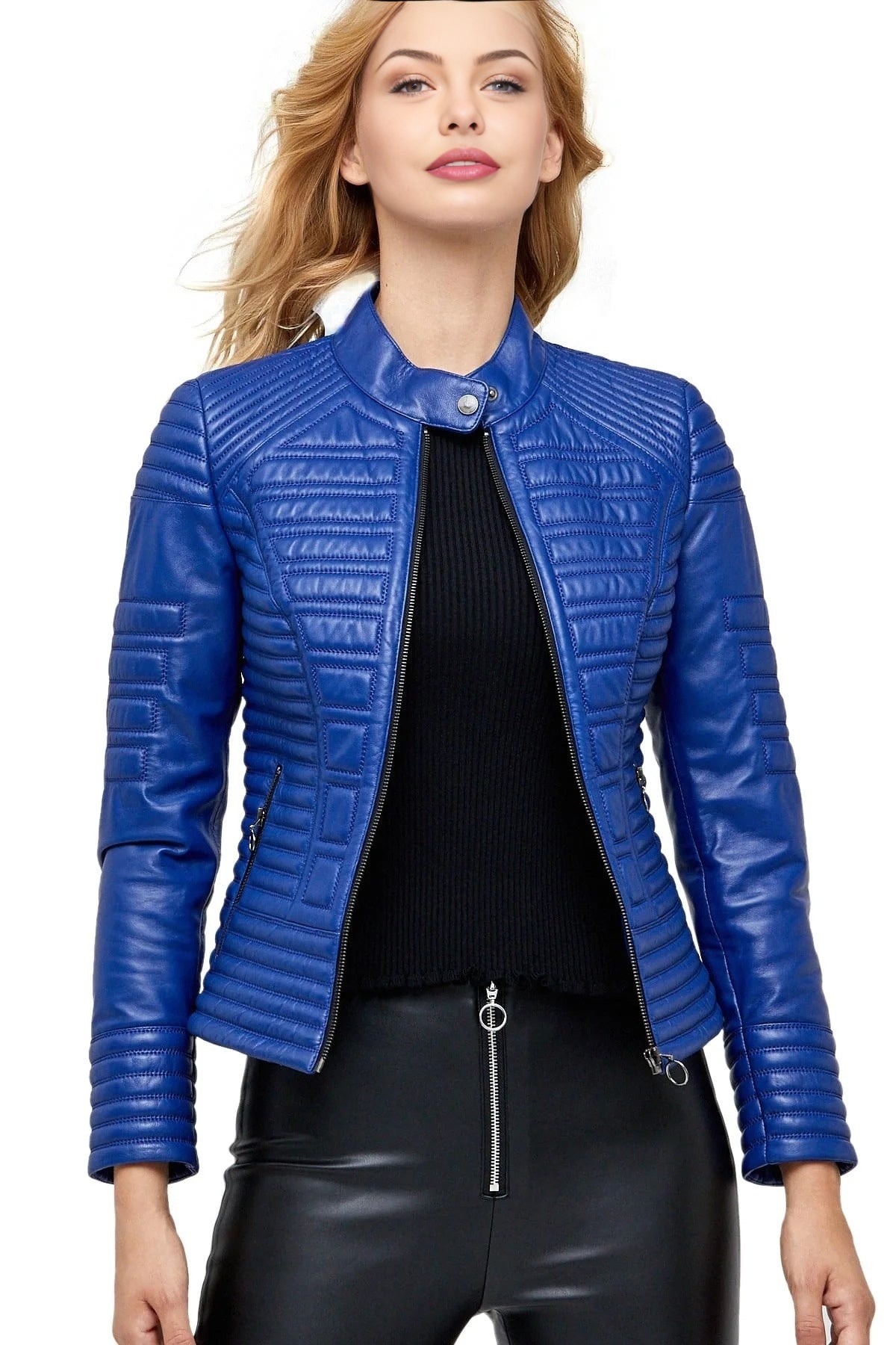 Charlotte Blue Biker Stylish Leather Jacket For Women