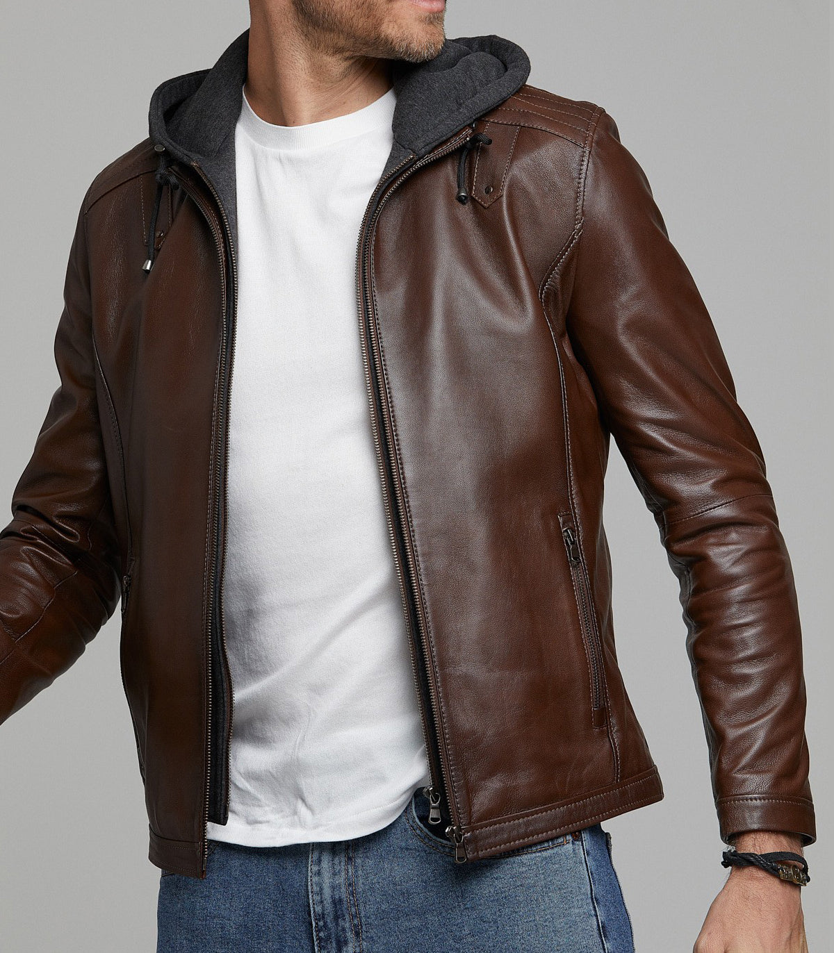 Introducing our Men's Brown Stylish Leather Jacket with a Sleek Black Hood, a symbol of rugged elegance and urban flair. Crafted from premium distressedsheepskin leather, this bike rider jacket exemplifies quality and durability. The YKK zipper ensures both strength and style, while the front zipper closure adds a contemporary touch.