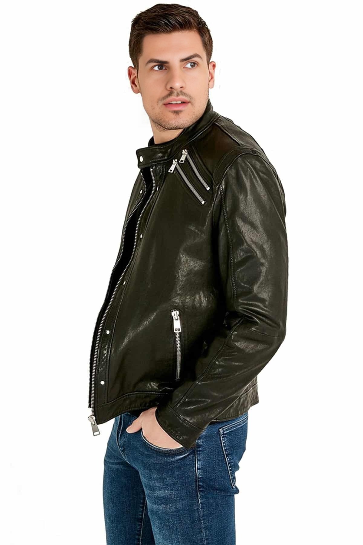 Grant Men’s 100% Real Olive Leather Biker Galore Jacket