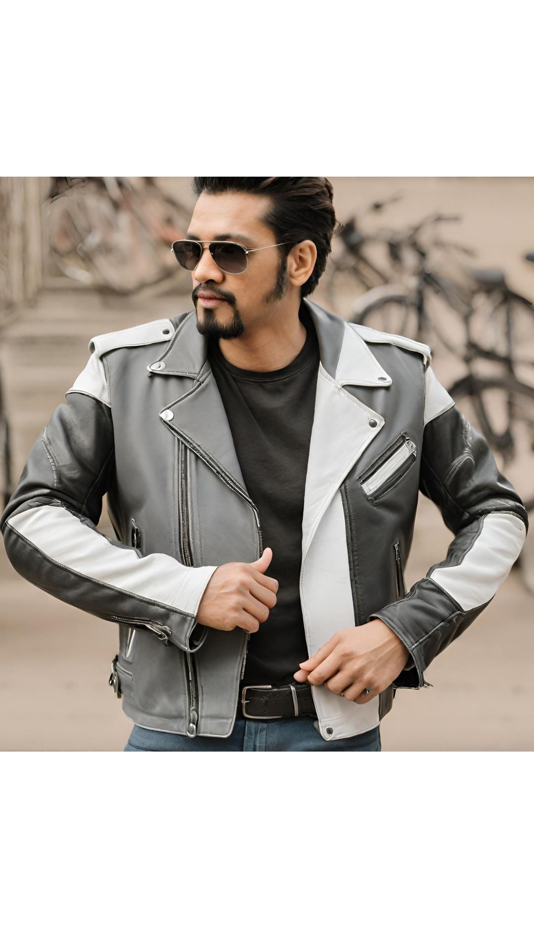 Embrace the epitome of style and sophistication with our extraordinary men's grey, white, and black leather jacket. Crafted from luxurious distressed sheepskin, this jacket boasts a unique color combination that exudes modernity and elegance. The sleek zipper closure at the front ensures effortless wearability, while the small zipper on the sleeve adds a subtle yet striking detail. Each zipper, meticulously crafted by YKK, promises durability and reliability, ensuring your jacket stands the test of time. With its slim-fit silhouette, this cafe racer jacket perfectly contours to the body, offering both comfort and confidence with every wear.