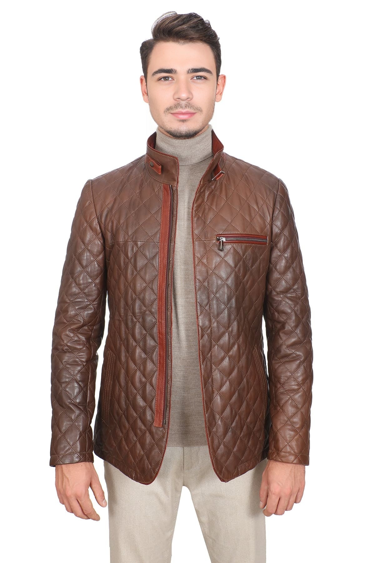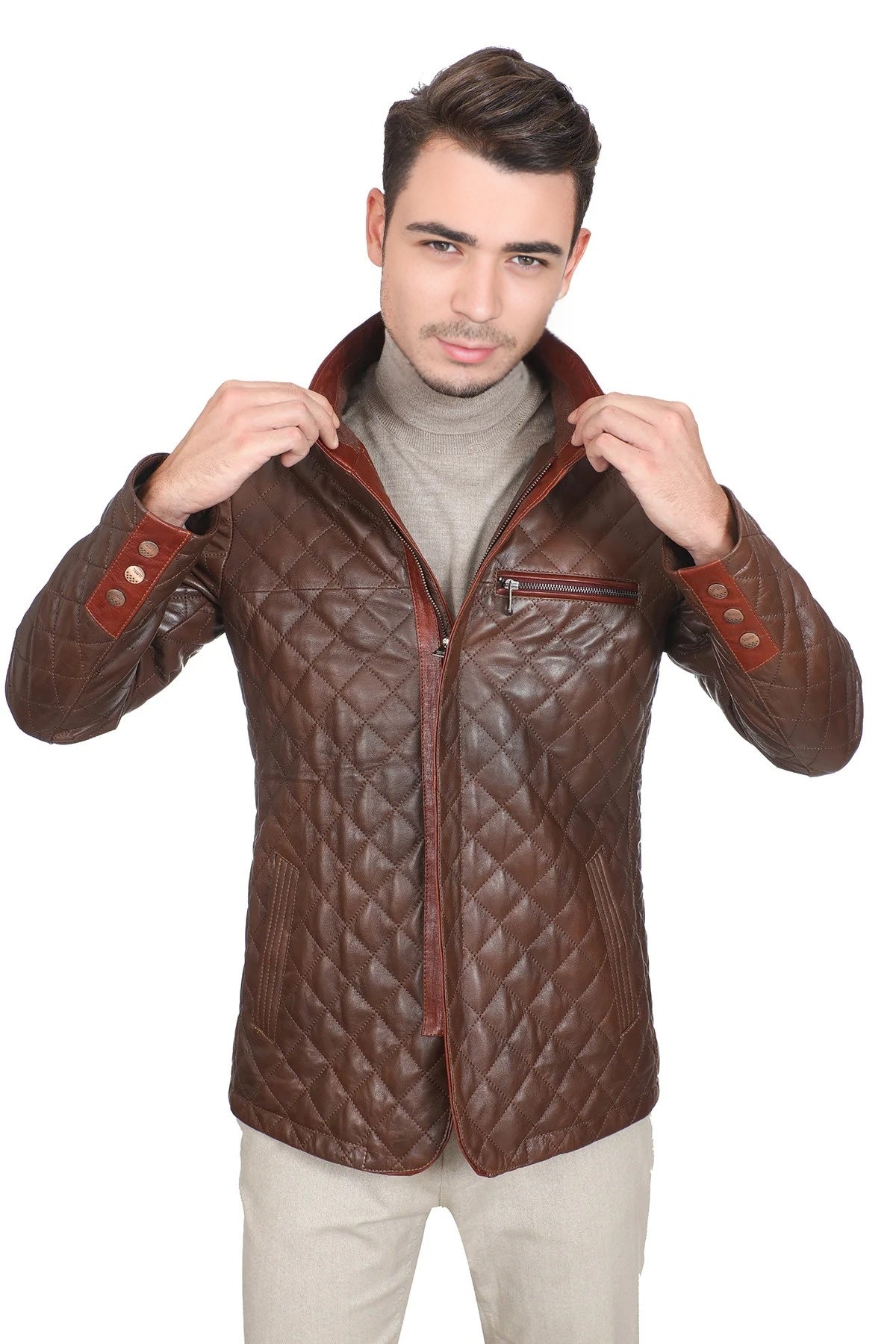 Ideal for colder weather, this jacket effortlessly combines fashion with functionality, whether worn casually or on motorcycle rides. Its slim fit silhouette complements various outfits, making it a versatile addition to any wardrobe. Embrace warmth and style with the brown puffer leather jacket, perfect for those seeking comfort and rugged elegance.