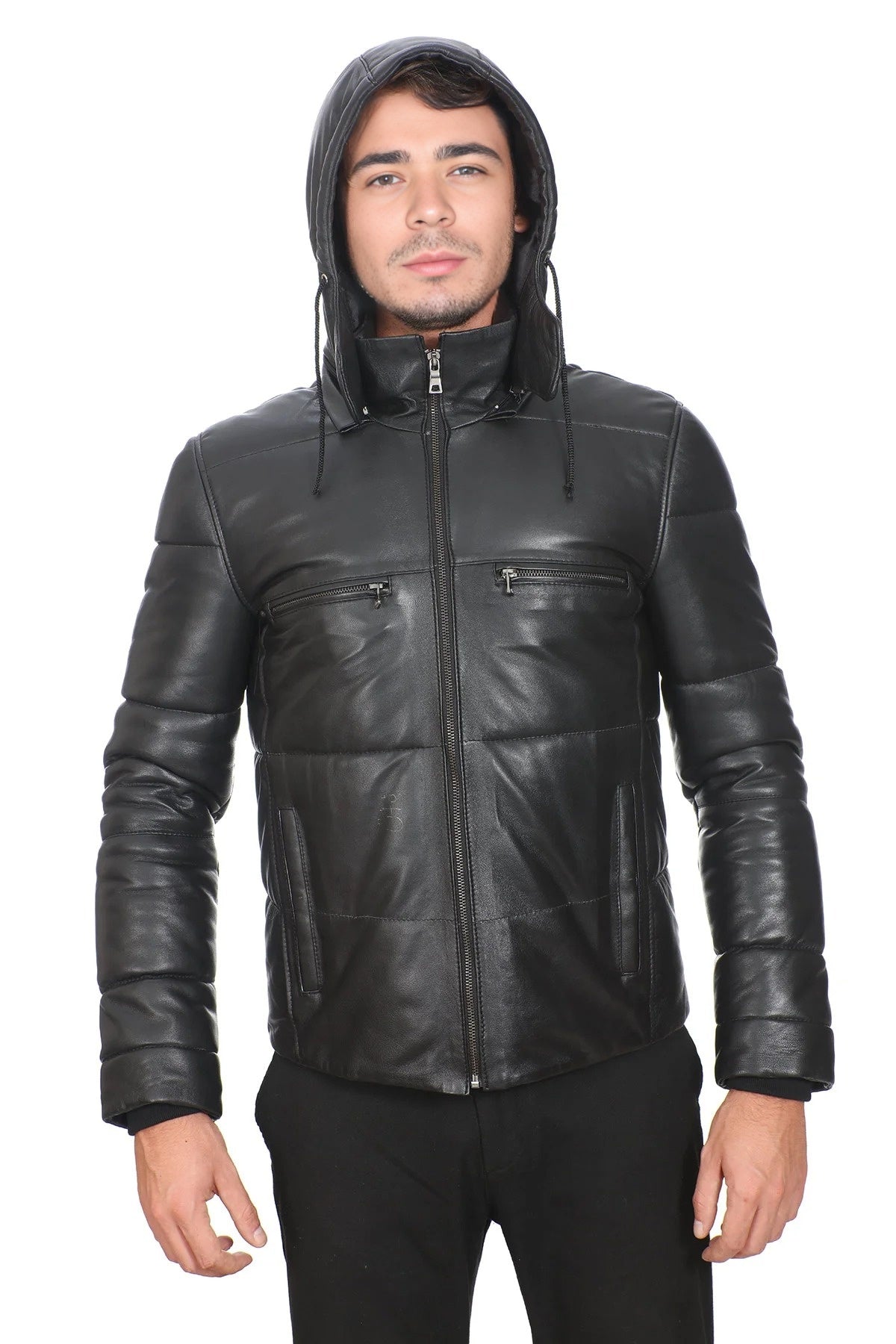 Joe Slim Fit Black Leather Jacket For Men With Hood