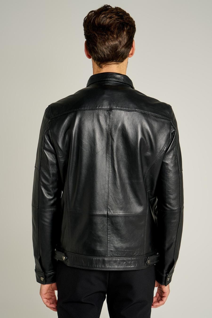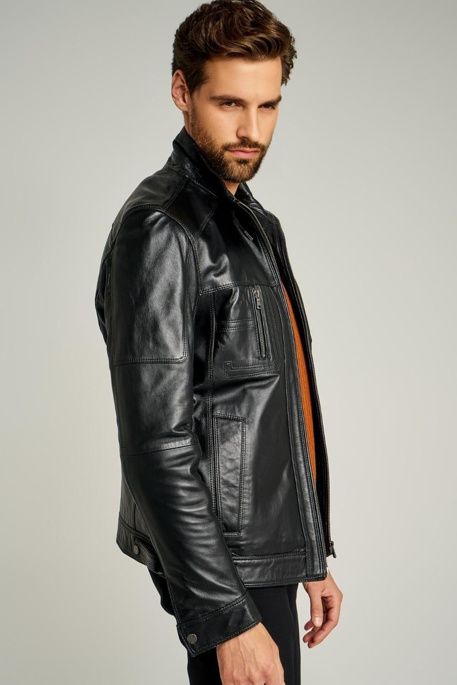 Introducing our Men's Stylish Black Leather Jacket, the epitome of contemporary rugged elegance. Crafted from premium distressed leather, this jacket exudes a timeless charm and character that only improves with time. The high collar, secured with a belt closure, adds a touch of sophistication and protection.