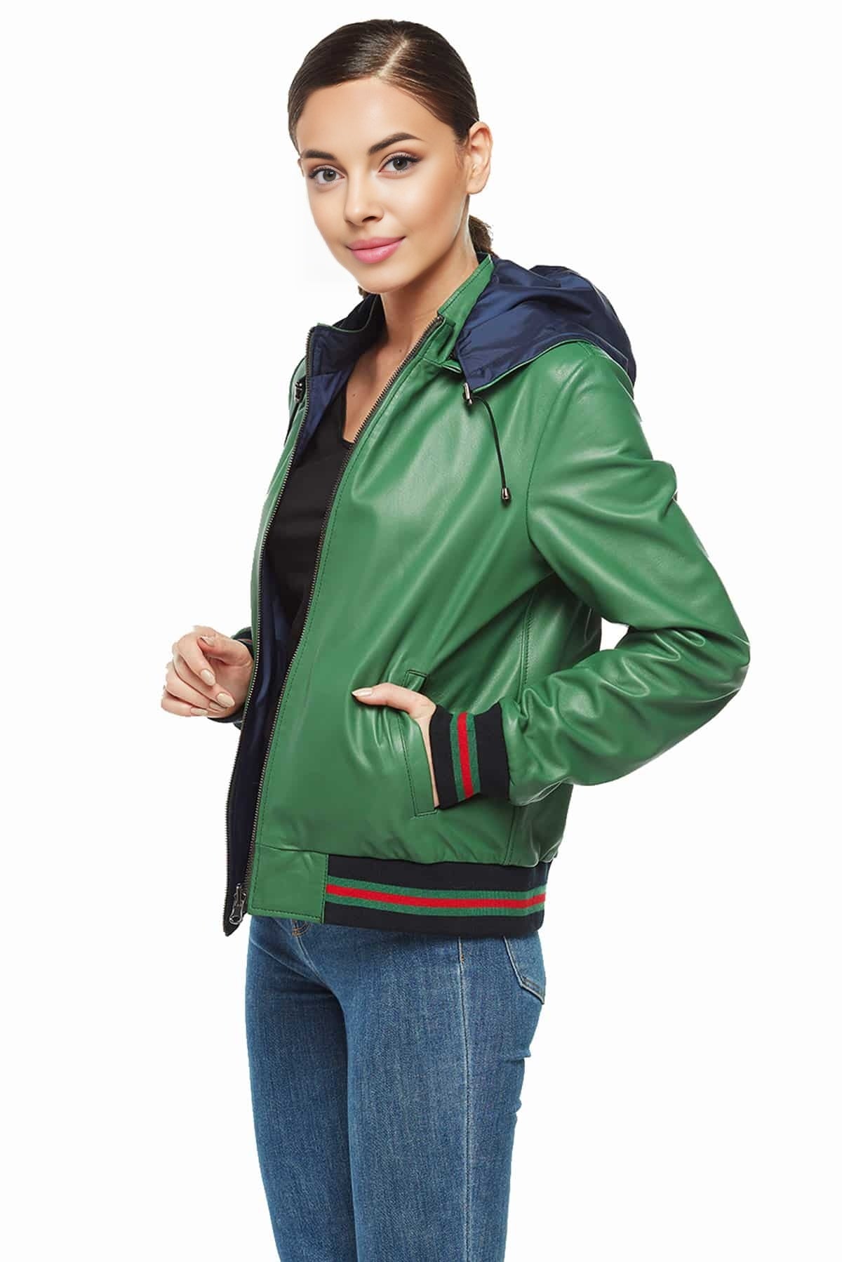 - Green bomber leather jacket for women