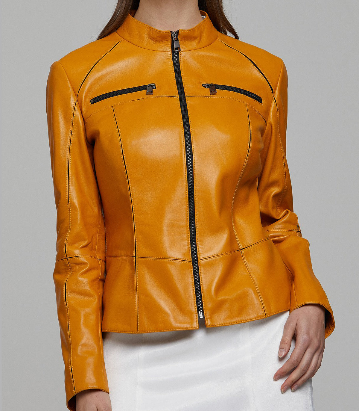 Elevate your fashion game with our Women's Yellow Stylish Leather Jacket, a true symbol of individuality and flair. Crafted from high-quality sheepskin leather, this slim-fit marvel offers both comfort and style. With its upper side zip pockets and YKK zipper closure, it seamlessly blends convenience with fashion. The distressed leather finish adds a unique vintage charm, making it the perfect choice for the modern woman seeking to make a bold statement.