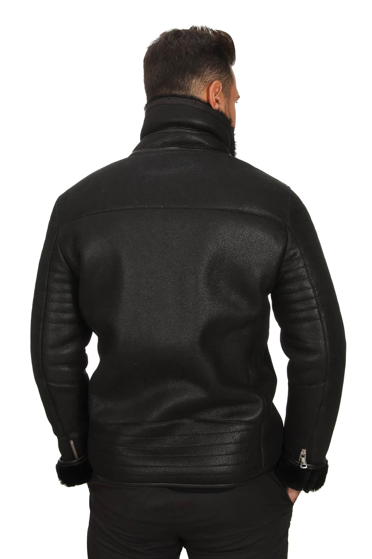 Discover the epitome of rugged style and premium craftsmanship with our men's black leather motorcycle jacket. Designed for the modern man who values both fashion and function, this jacket is a true statement piece. The round collar is adorned with original fur, offering a touch of luxurious warmth that sets it apart from ordinary jackets. Crafted from distressed sheepskin leather, it boasts a unique, vintage look that only improves with age. The stylish YKK zipper closure ensures a secure fit while adding a sleek, modern touch. Practicality meets style with two lower side pockets and an upper side pocket, providing ample storage for your essentials. The slim fit design accentuates your physique, making it a versatile choice for any occasion. Perfect for winter, this jacket not only keeps you warm but also elevates your style game. Embrace the road with confidence and make a bold statement with this must-have leather jacket.