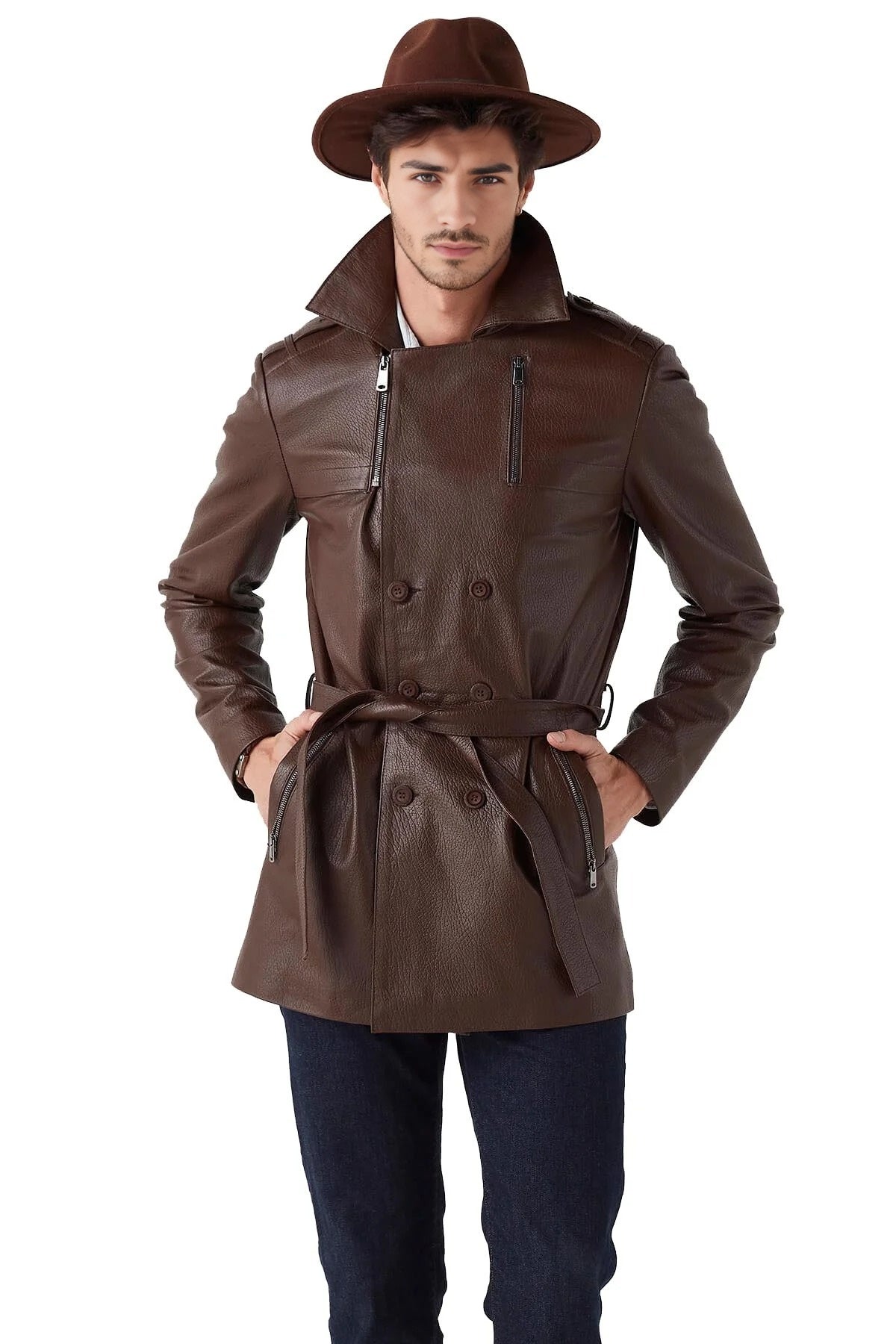 Whether you're dressing up for a special event or simply want to make a statement in your everyday attire, this brown trench leather coat is the perfect choice. Its timeless design, combined with modern detailing, ensures you’ll stand out with effortless elegance.
