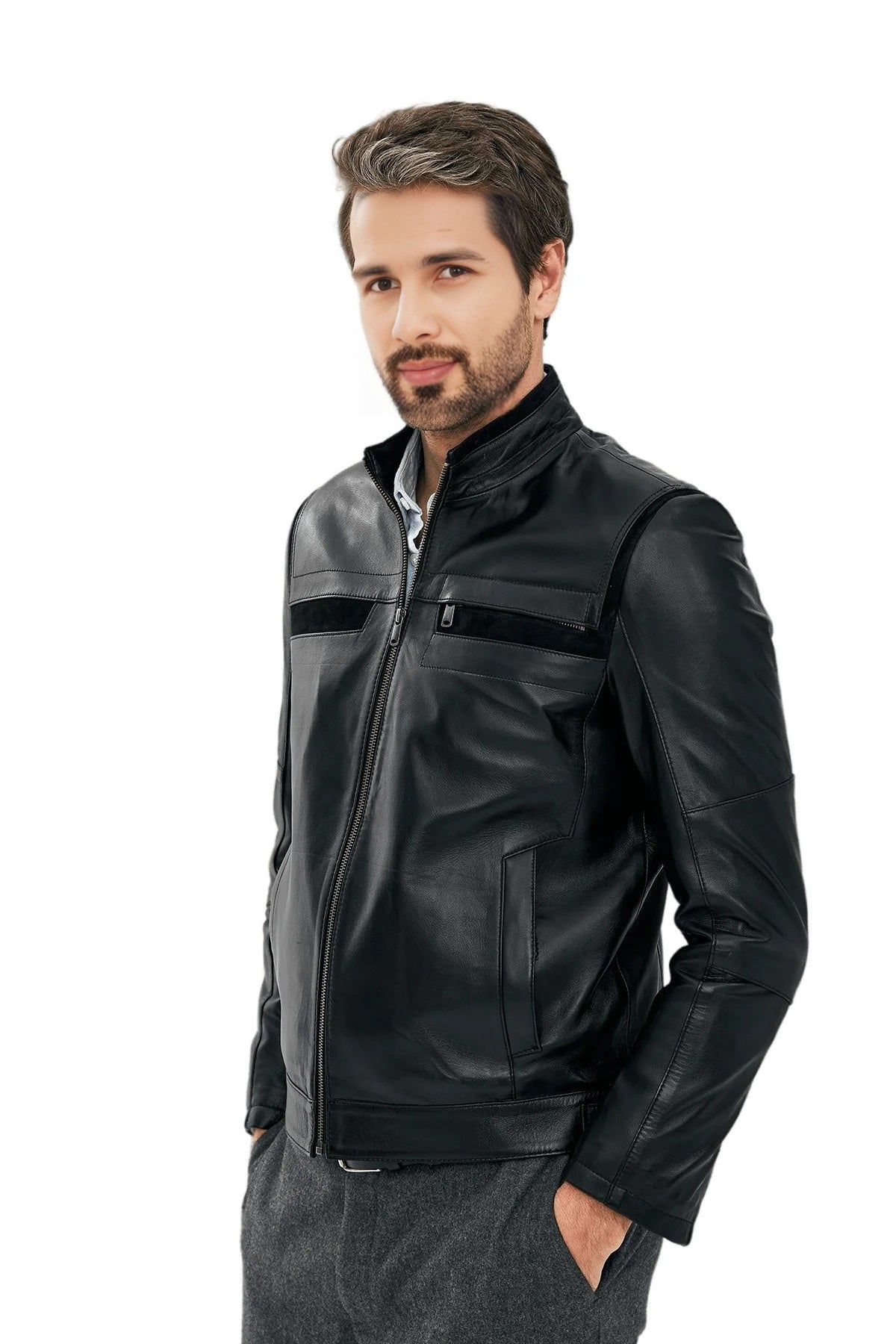 The front zipper closure ensures a secure fit while adding a touch of contemporary edge. Equipped with four pockets—two lower side pockets and two upper side pockets—this jacket offers ample storage for your essentials, whether you’re on a motorcycle or navigating the urban jungle. Each pocket features robust zippers, crafted with YKK technology to ensure durability and smooth operation. Designed specifically as a motorcycle jacket, it combines durability with style, offering protection and confidence for every ride. Whether you’re hitting the open road or heading out for a casual evening, this black leather jacket promises to be a versatile staple in your wardrobe, exuding a blend of sophistication and adventurous spirit.